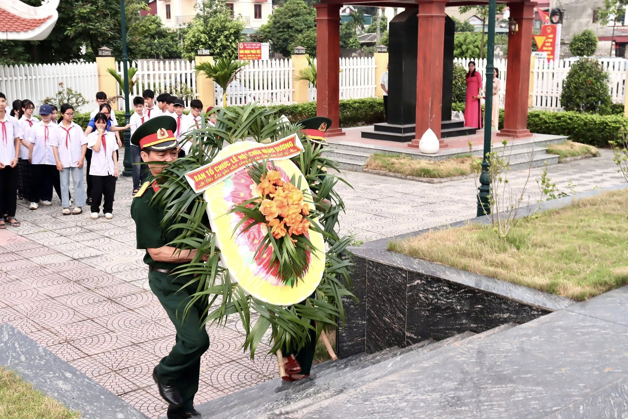 Các đại biểu dâng vòng hoa để tưởng nhớ đến các anh hùng liệt sỹ đã anh dũng chiến đấu, hy sinh vì nền độc lập tự do của Tổ quốc.