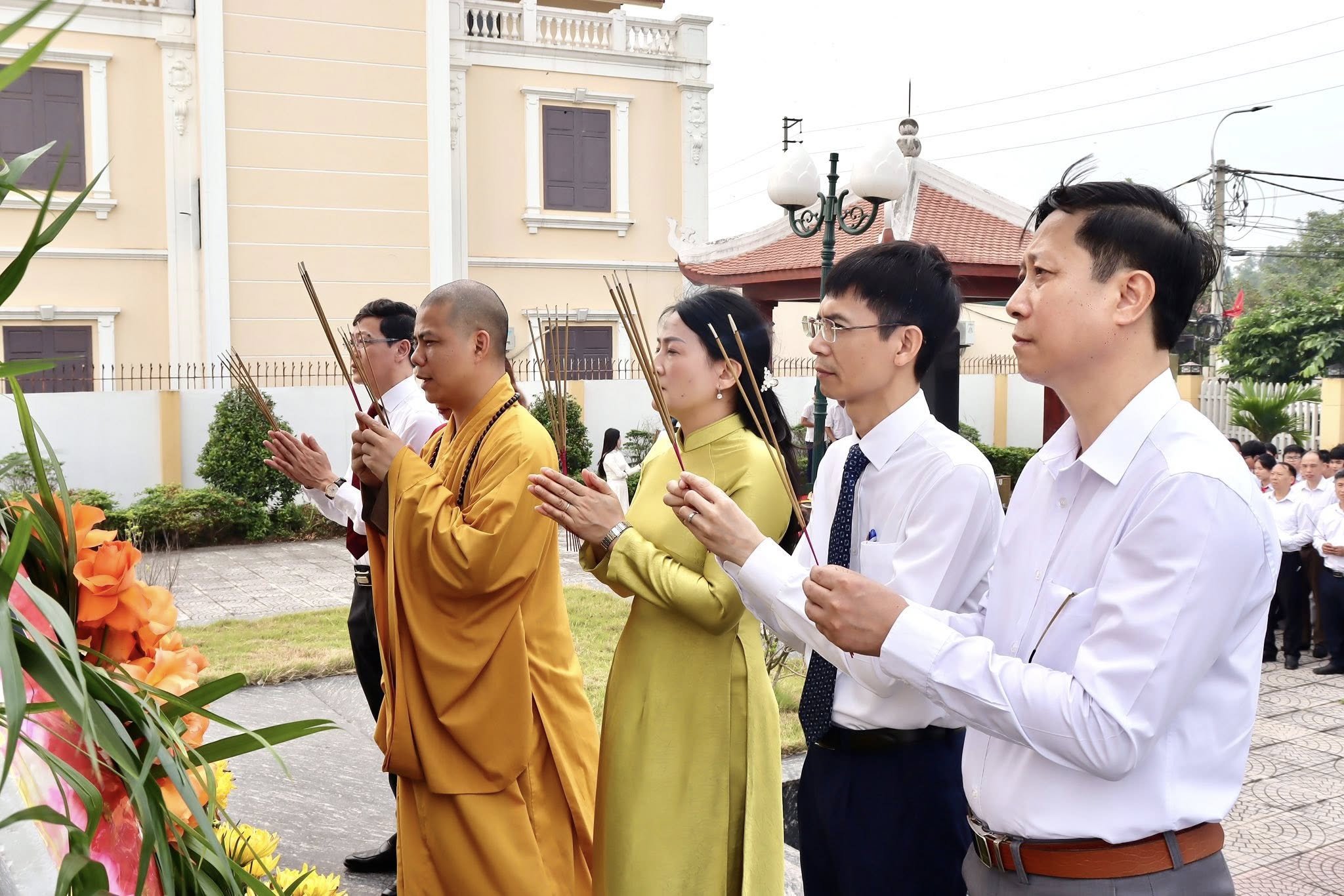Các đại biểu dâng hương tưởng nhớ đến các anh hùng liệt sỹ đã anh dũng chiến đấu, hy sinh vì nền độc lập tự do của Tổ quốc.Đây là nghi lễ nằm trong khuôn khổ chương trình Lễ hội truyền thống Di sản thế giới chùa Nhẫm Dương năm 2026 tưởng niệm 322 năm ngày Thánh Tổ Quốc Sư Đạo Nam Thông Giác Thủy Nguyệt nhập niết bàn (1704 - 2026).