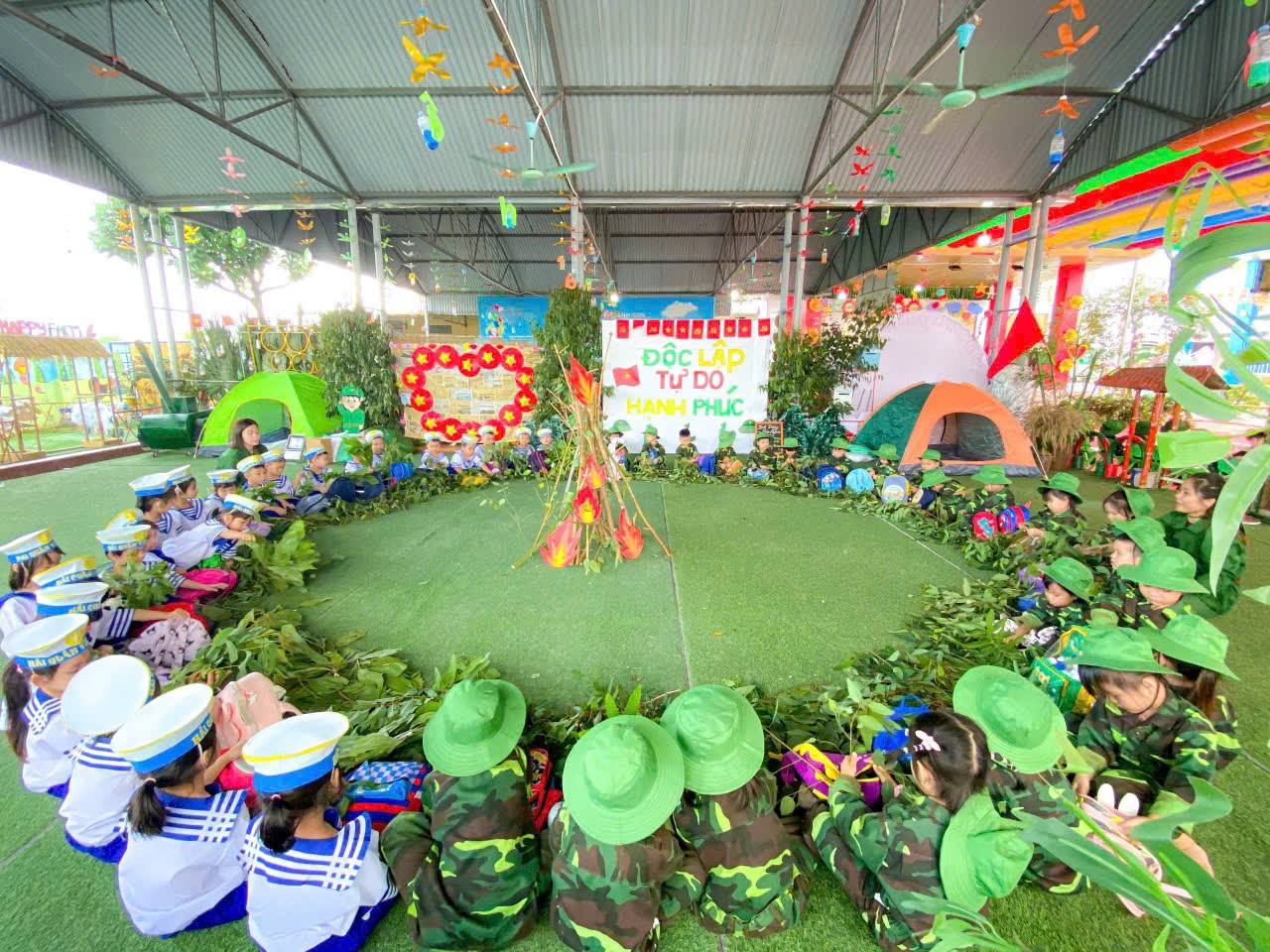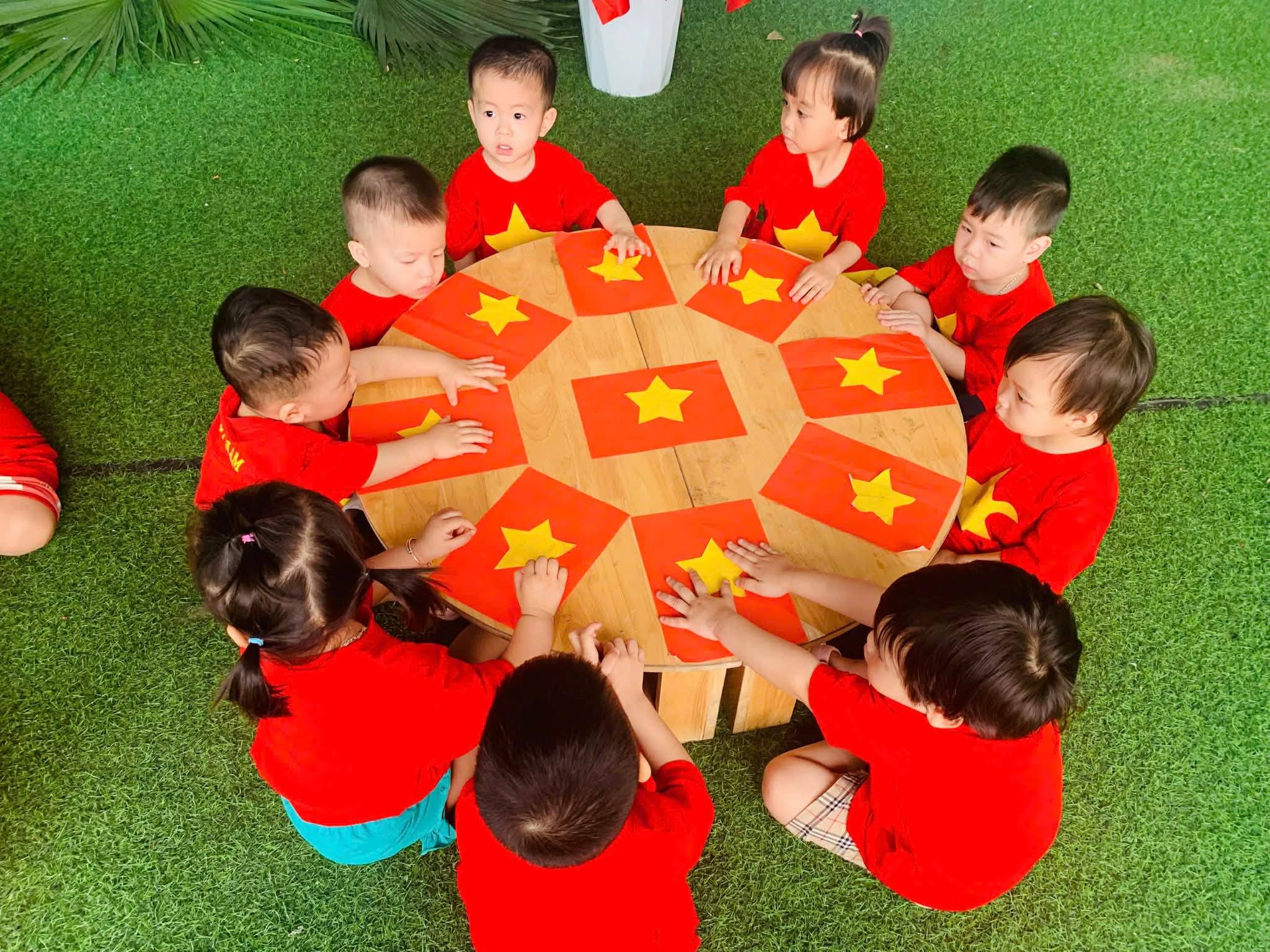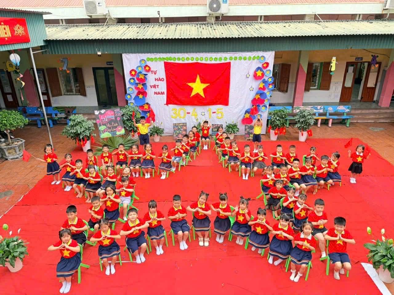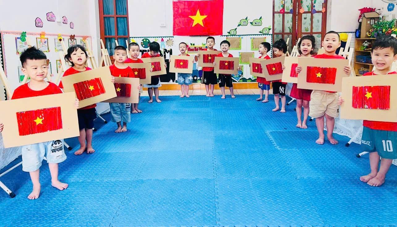 Các bé Trường Mầm non Minh Tân tự hào khi được tham gia các hoạt động chào mừng Ngày giải phóng miền Nam 30/4 và Quốc tế lao động 1/5