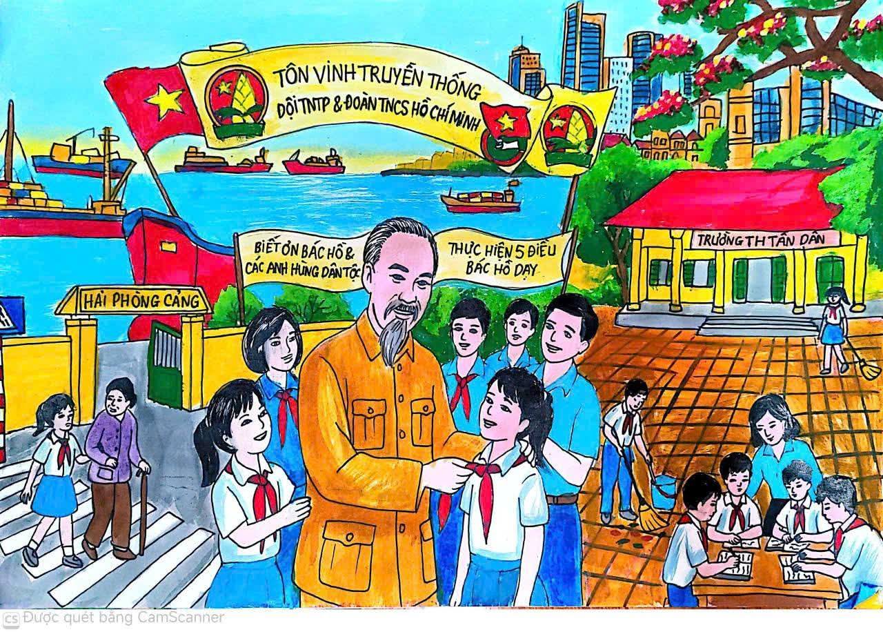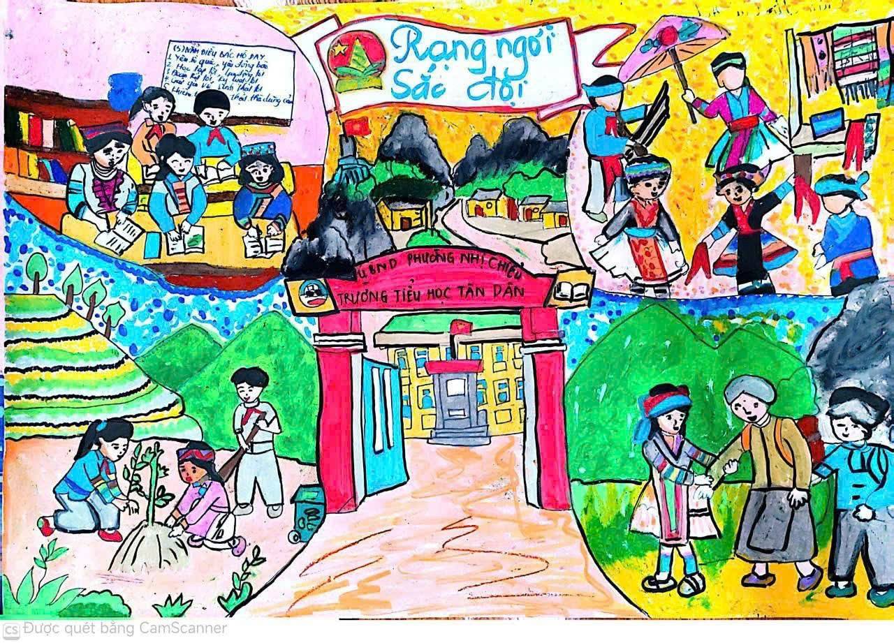 Hoạt động vẽ tranh chào mừng kỷ niệm Ngày giải phóng miền Nam tại Trường Tiểu học Tân Dân
