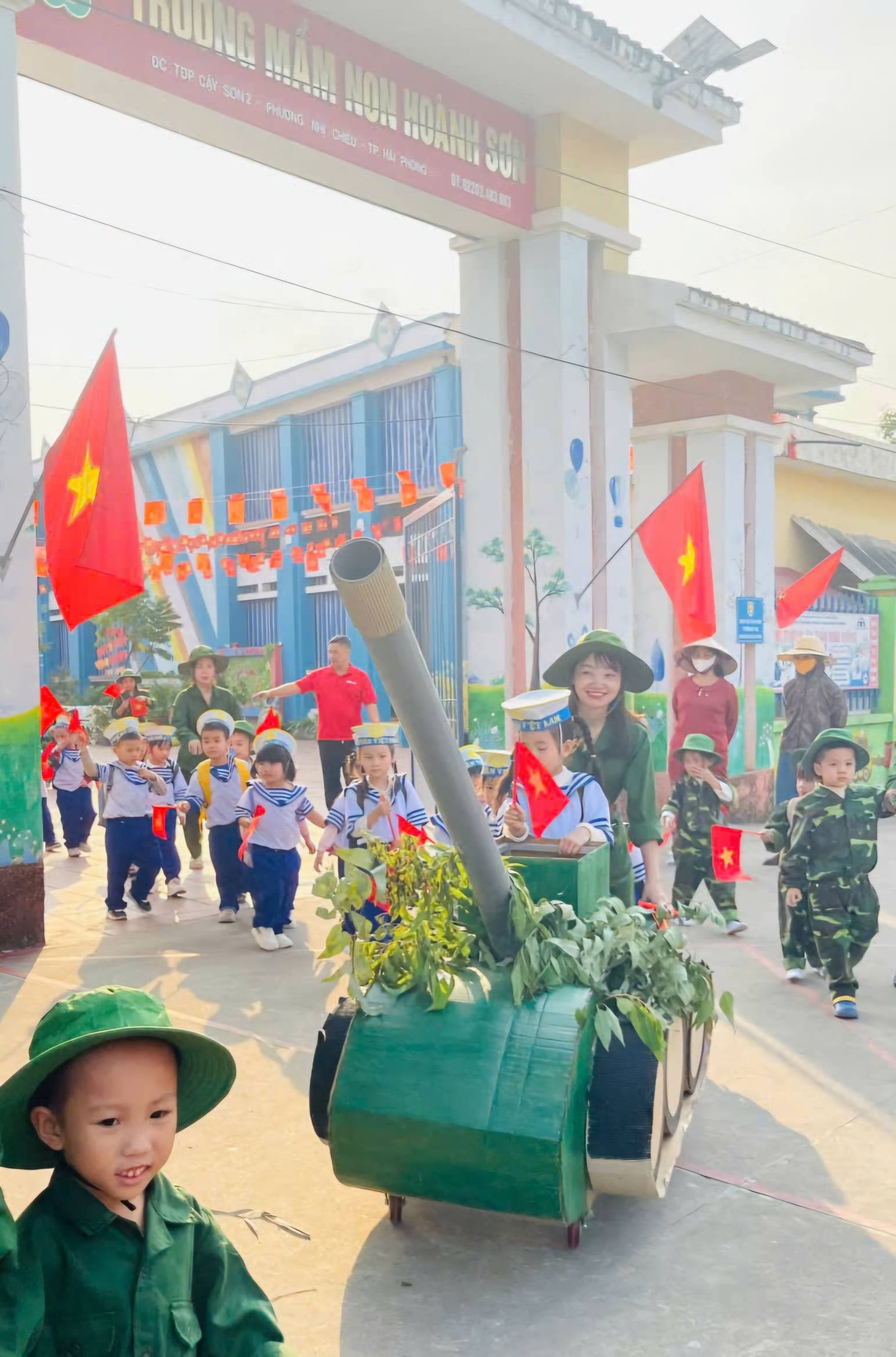 Trong những ngày tháng 4 lịch sử, Trường Trường Mầm non Duy Tân như "sống dậy" khí thế chiến thắng ngày 30/4/1975
